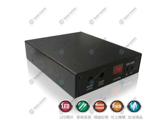 DM100S影音解調變主機,是一台兼具專業品質和靈活運用的解調變主機。 無論影 音訊號來自VHF、UHF或有線電視 ( CATV ) 頻道 ( 50.860 MHz ),皆能將您的需 求,整合成統一管理的系統。 配合高品質的MD500調變主機和標準機櫃收納架,是 您解決有線頻道系統的不二好幫手。