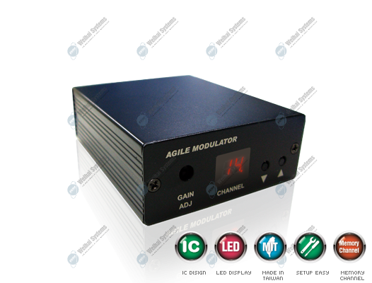 AVM-1499 is a TV channel Modulator specially designed for NTSC TV system on CH14-16 & CH96-99.